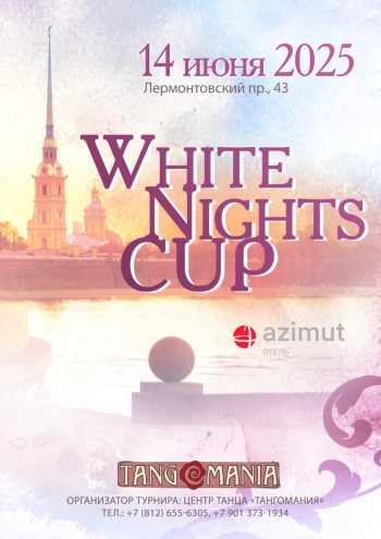 Призы: Все участники награждаются памятными дипломами, победители в номинациях - ценными призами и медалями. Победители White Nights Tango Cup получают кубки и ценные призы.