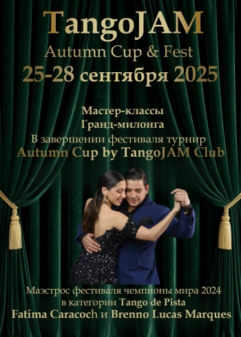 Приглашаем на первый фестиваль TangoJAM Autumn Cup & Fest , в рамках которого Вас ждут мастер-классы, гранд-милонга и в завершении фестиваля турнир Autumn Cup by TangoJAM Club!