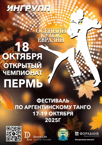Приглашаем вас 18 октября 2025 на Осенний Кубок Евразии по аргентинскому танго от Школы танцев Dance Life, г. Пермь.