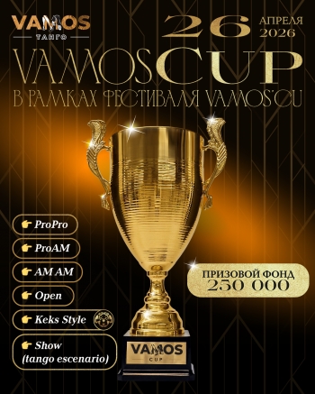 Будет разыгран переходящий Кубок Vamos Cup в номинации Tango de pista (Танго для танцпола) Pro-pro. На кубке будут вписаны имена победителей, дата турнира, и он будет передан на хранение победителям сроком на 6 месяцев или до следующего турнира.